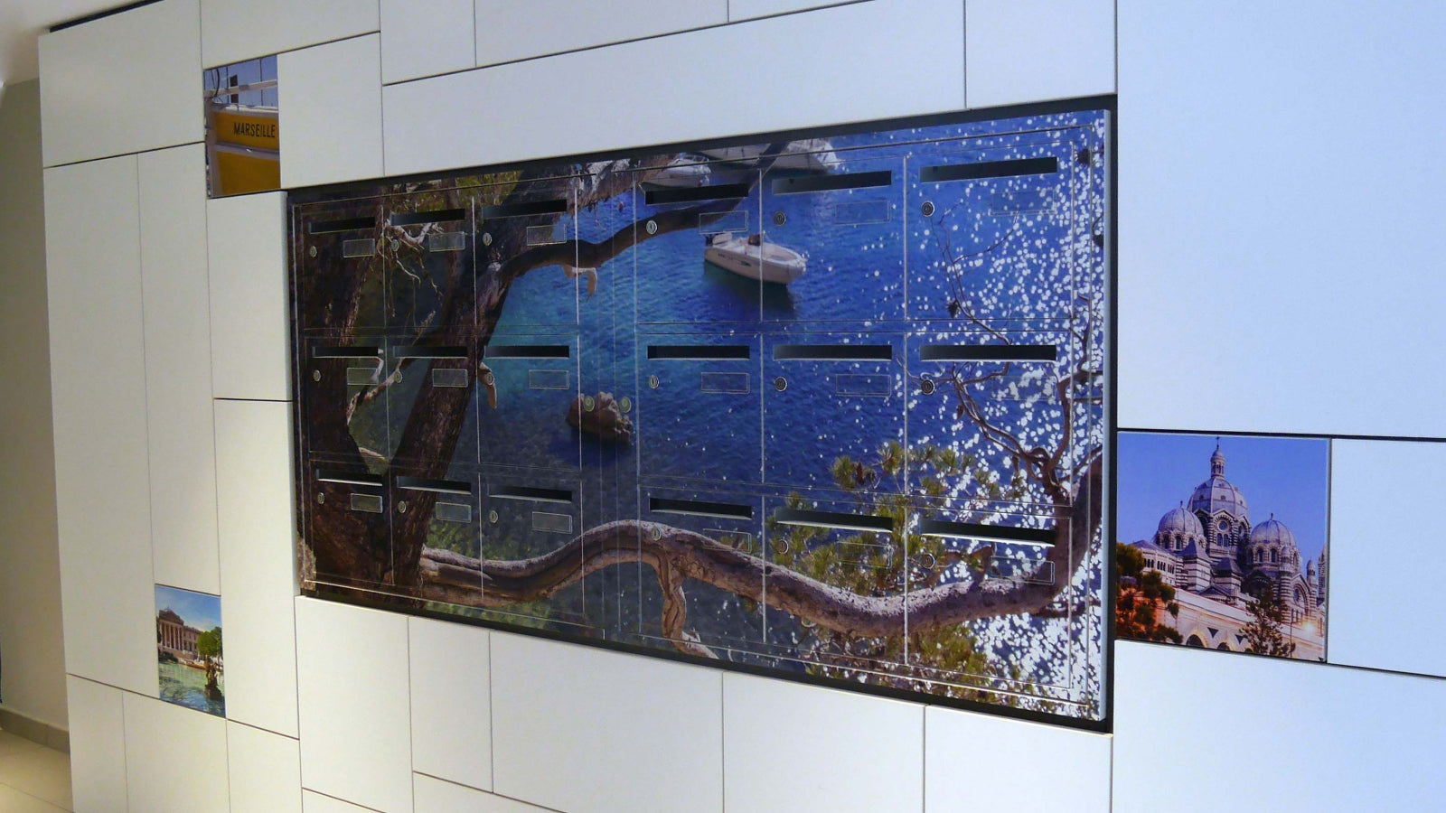 Modèle Métal 4 avec impression numérique laser et habillage panneau stratifié blanc.