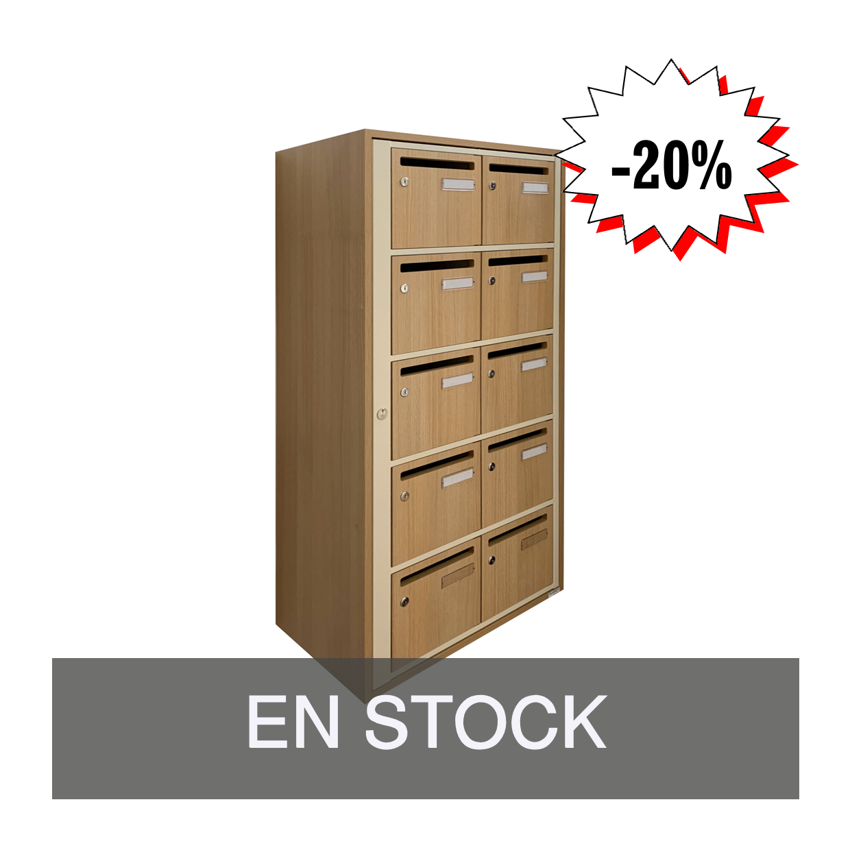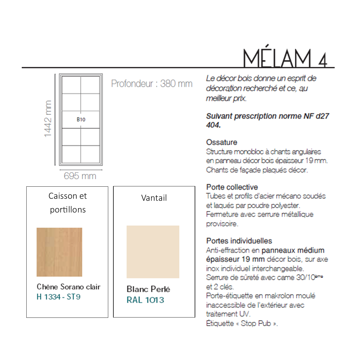 1 Bloc Mélam 4 B10 (2 colonnes de 5 cases, soit un total de 20 cases) Chêne Sorano (vantail RAL 1013 Blanc Perlé).